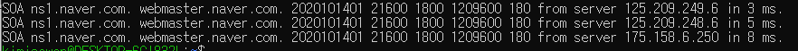 naver는 총 3, 5, 8ms 정도가 걸렸다.