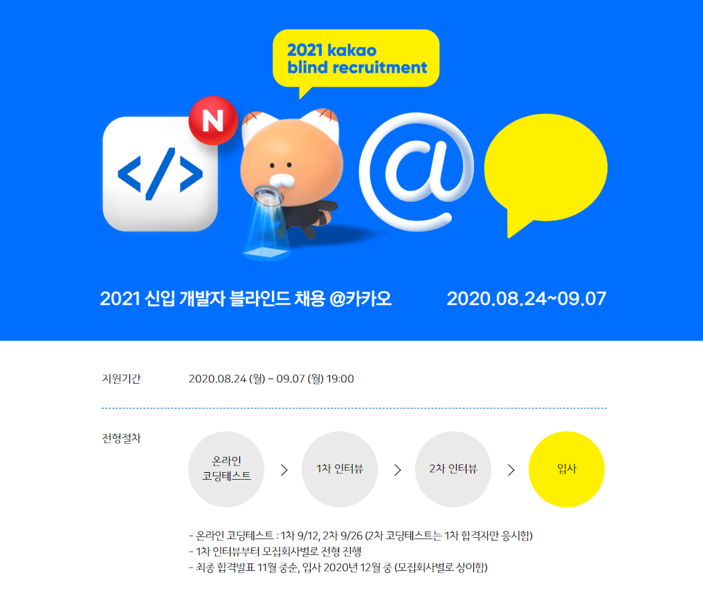 2021 카카오 블라인드 공채에 합격한 후기를 올리려 합니다. 아직도 믿기지 않네요. 평소 감정 변화가 적은 편인데도,