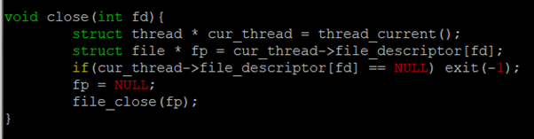 그리고 현재 thread의 file_descriptor 중 할당된 struct file이 있으면 close를 해준다. 파일을 닫지 않고 Process가 죽으면 다른 Process가 그 file을 쓸 수 없기 때문이다.