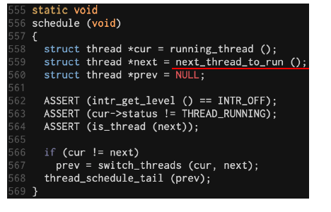 이렇게 생겼다. 이 함수는 아까도 말했지만 현재 thread와 그 다음 돌려줄 thread를 찾아서 바꿔준다.