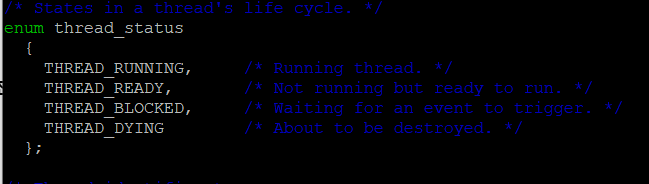 threads/thread.c에 보면 struct list ready_list가 선언되어있다. 여기가 THREAD_READY 인 thread가 줄지어서있는 곳이다.