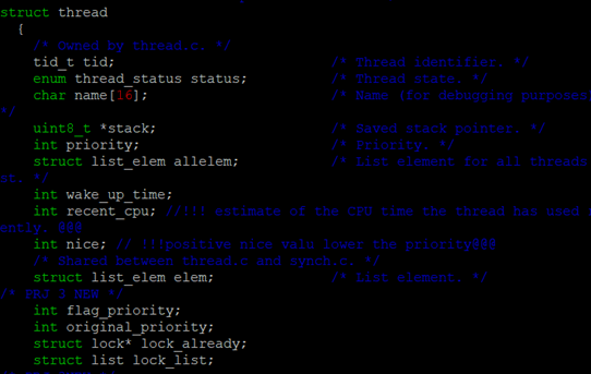 lThread struct에 nice와 recent_cpu를 추가한다. 이 변수에 값을 저장할 것이다.