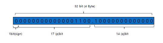 정수 부분이 17 bit고 소수 부분이 14bit라는 점을 감안해서 Fixed Points는 LSB로부터 14번 왼쪽으로 bitwise 하면 된다.