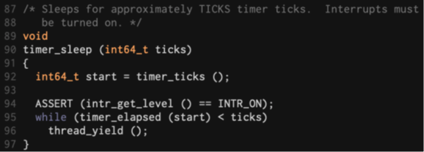 현재 PintOS는 timer_sleep()의 while 문을 계~~~~속 돌면서 scheduling을 한다. 즉 잠들어있는 thread들을 계ㅔㅔㅔㅔㅔㅔㅔ속 while문을 돌리고 있다. 우리는 이런 낭비를 막으려고 wake_up time이 도래한 thread만 깨워줄 거다.