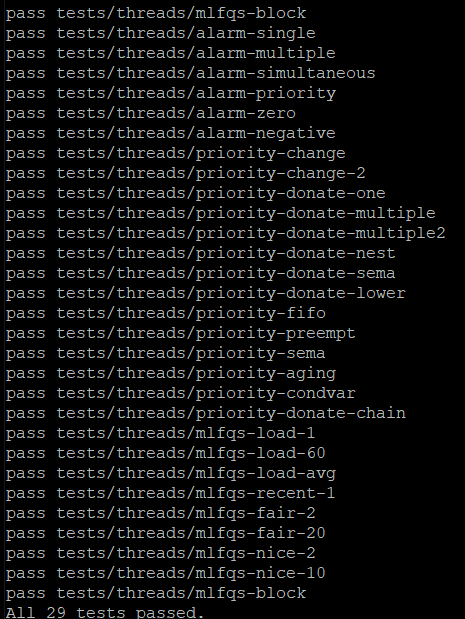이걸 Scheduler를 구현하려면 (1) Priority를 설정해야한다. 이를 위해서 thread에 관한 함수와 구조체를 수정해야 한다. 각기 다른 Priority thread가 잘 운영되도록 하려면 (2) Synchronization을 잘 해야 한다. 이걸 하려면 Semaphore와 lock에 관한 구조체와 함수를 수정해야 한다. 이 두 과정을 거쳐서 각기 다른 Priority를 지닌 Scheduler가 잘 작동할 수 있다. 뭔 소린 하냐고? 하다보면 다 알게되리니...