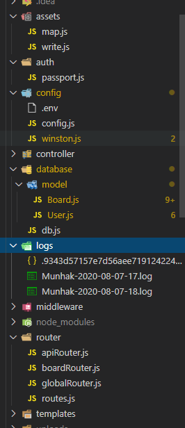 NodeJS에도 Winston이라는 로그 모듈이 있다. 가장 많이 쓰인다. 프로젝트는 아래 프로젝트를 사용한다. 청소년이 참여적으로 문학을 하길 바라는 마음으로 만들고있는 프로젝트다. 관심있는 분은 함께 해 주시라!